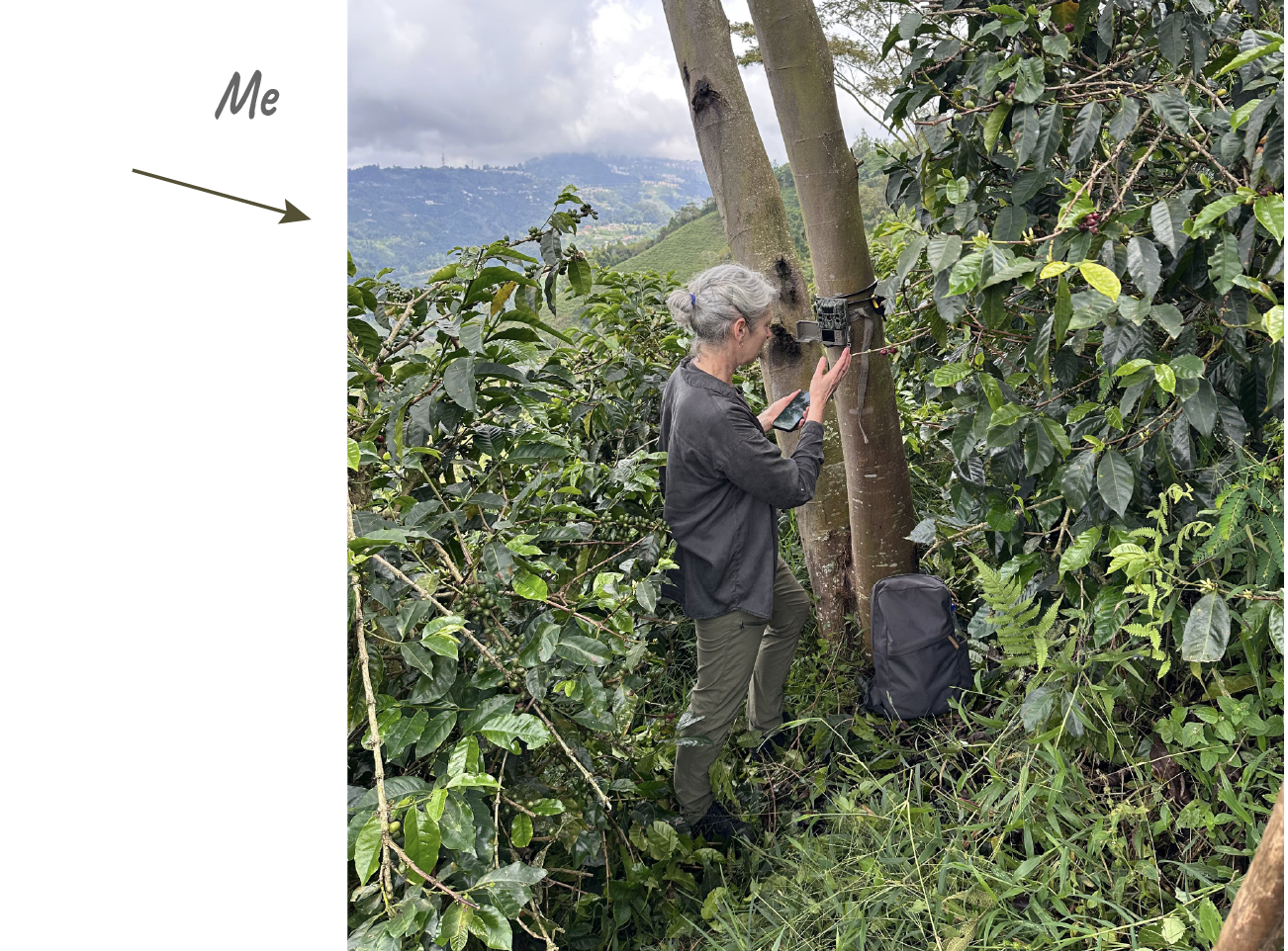 | Found good spots for the camera traps | Made Xime scamper like a mouse under the coffee plants with me for no reason |